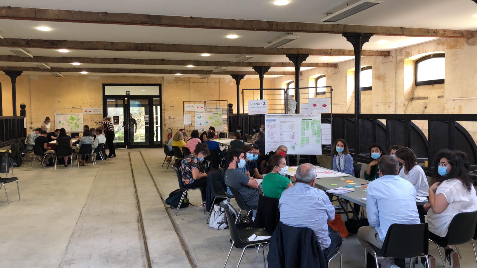 Une grande journée d’échange réunissant 80 acteurs du système alimentaire, les communes de Bordeaux Métropole, les échelons administratifs et les EPCI voisins a été organisée le 1er juillet 2021 avec pour objectifs de partager les enjeux agricoles et alimentaires du territoire, d’Identifier le rôle de la métropole, des communes et de leurs partenaires dans la mise en œuvre opérationnelle de la stratégie de résilience agricole et alimentaire et de favoriser les rencontres entre les acteurs agricoles et alimentaires du territoire. Pour cela, 5 stands thématiques participatifs ont été mis en place avec un système de rotation par groupes permettant de faciliter les échanges. Aussi, un stand en libre accès permettait aux acteurs de se positionner dans la Stratégie et sa gouvernance.
